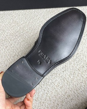 Мужские кожаные ботинки Prada черные с перфорацией 2025