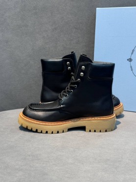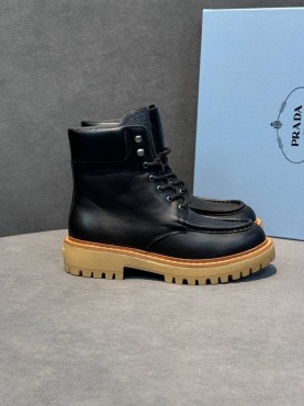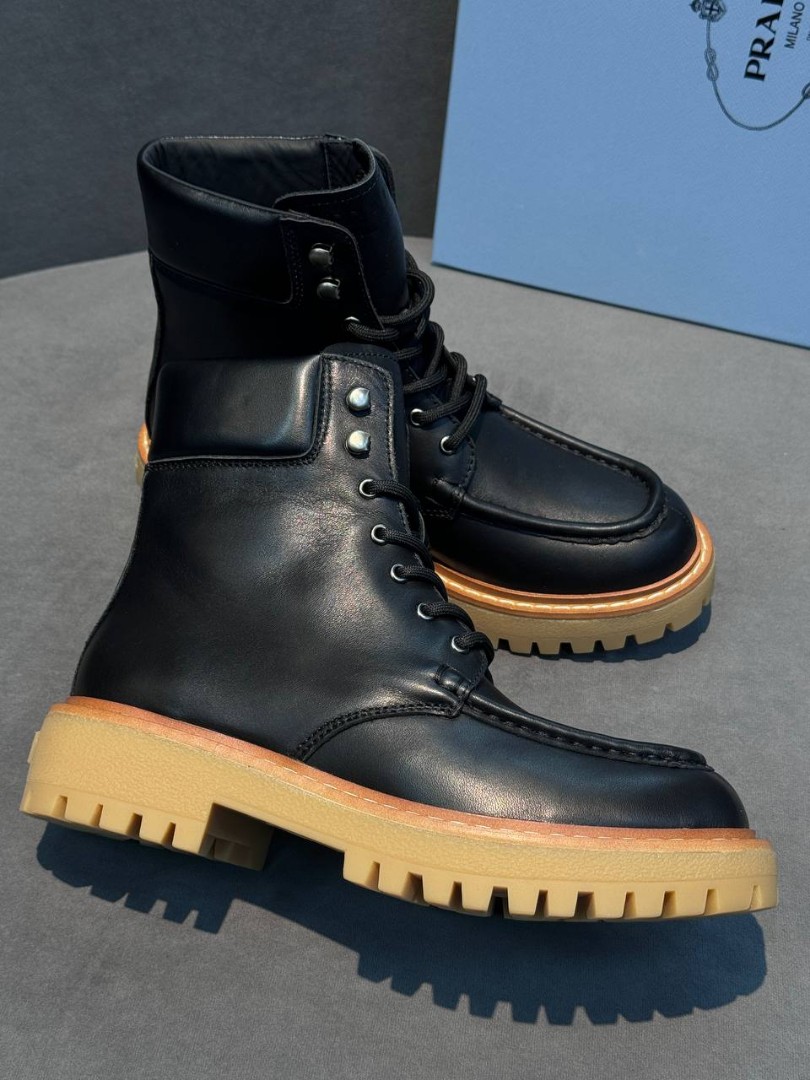 Мужские кожаные ботинки Prada черные со шнурками 2025