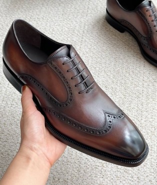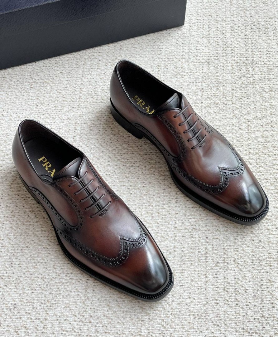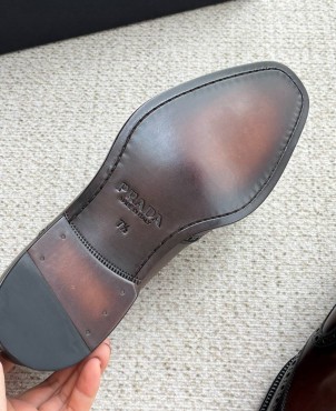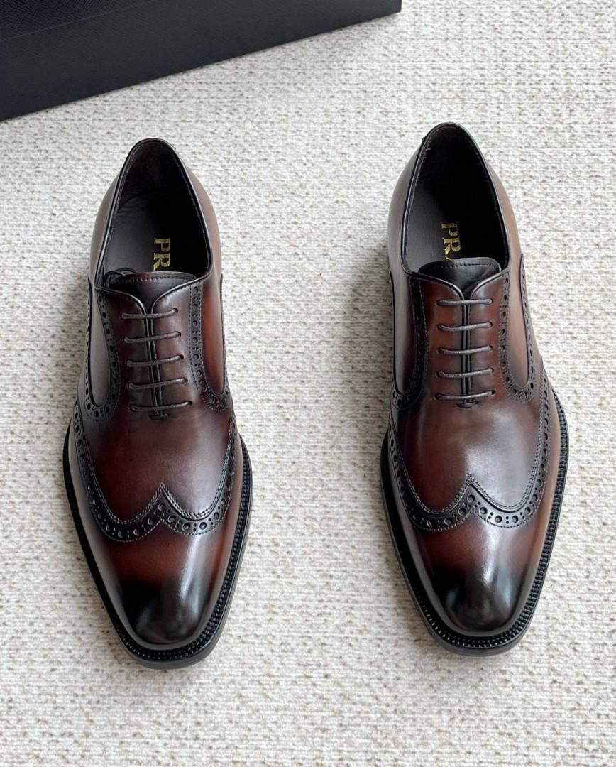 Мужские кожаные ботинки Prada коричневые с перфорацией 2025