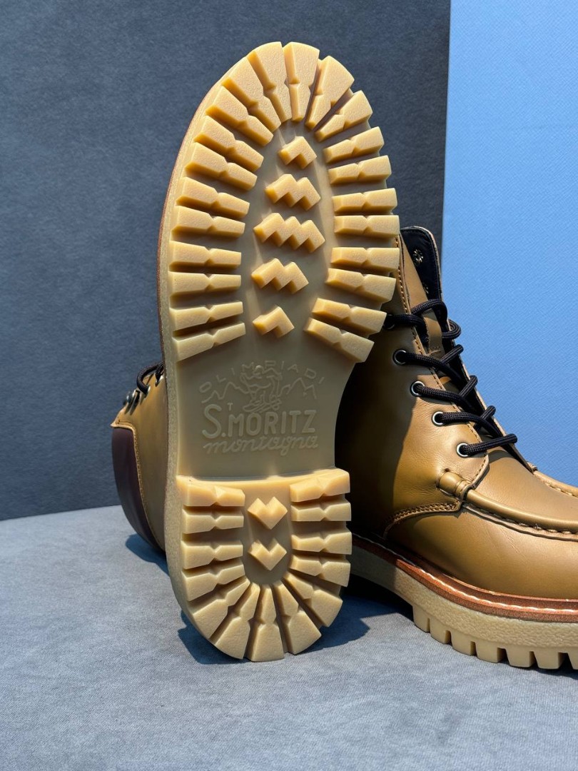Мужские кожаные ботинки Prada коричневые со шнурками 2025