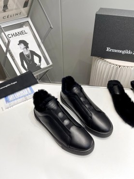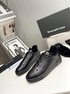 Мужские кожаные кеды Ermenegildo Zegna 2023 черные на меху
