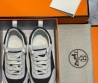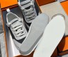 Мужские комбинированные кроссовки Hermes 2024 серые с зеленой буквой