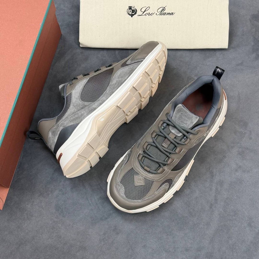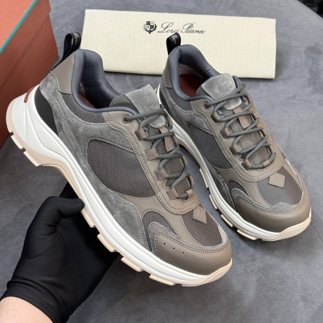 Мужские комбинированные кроссовки Loro Piana серые 2025