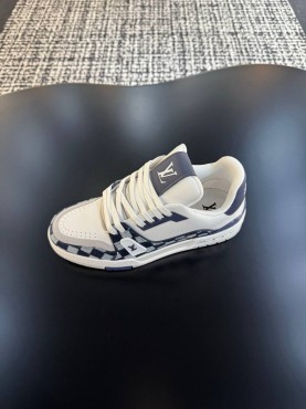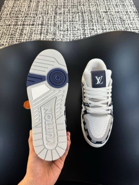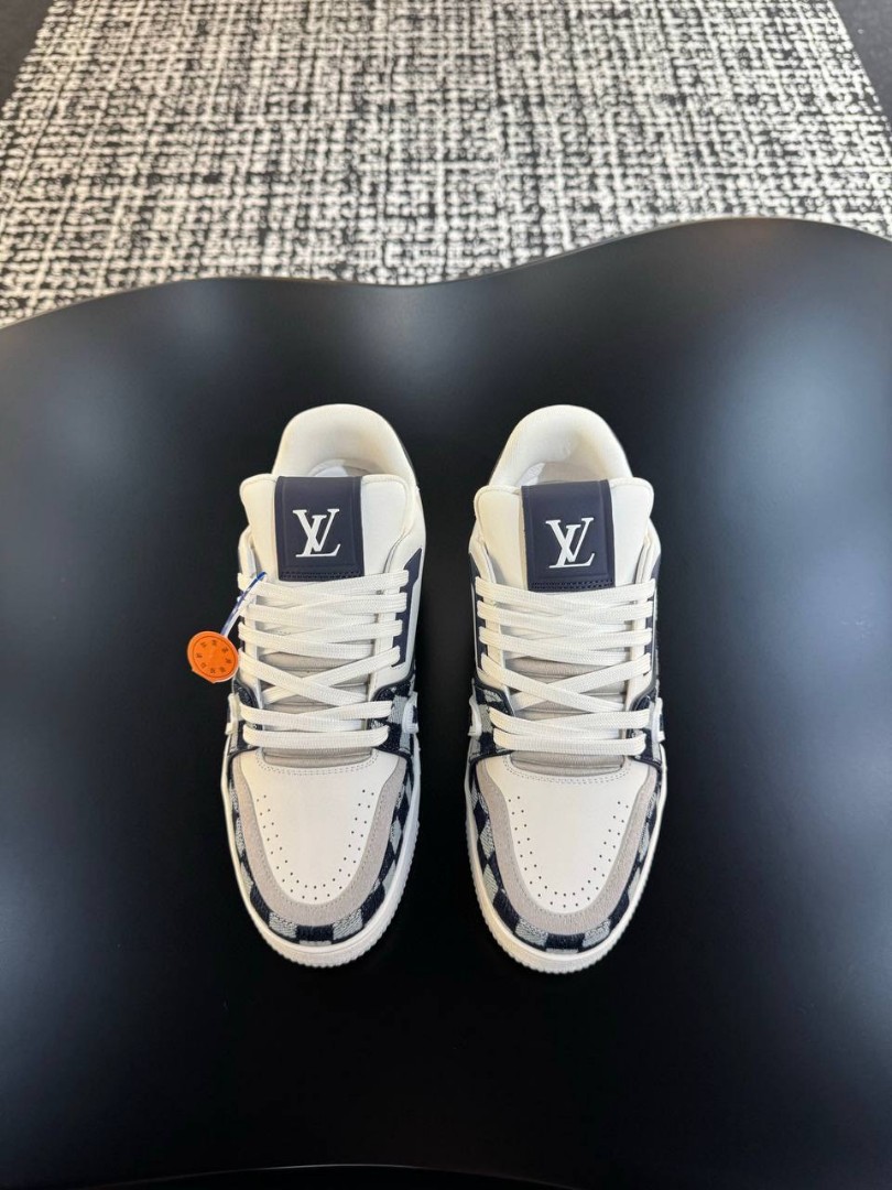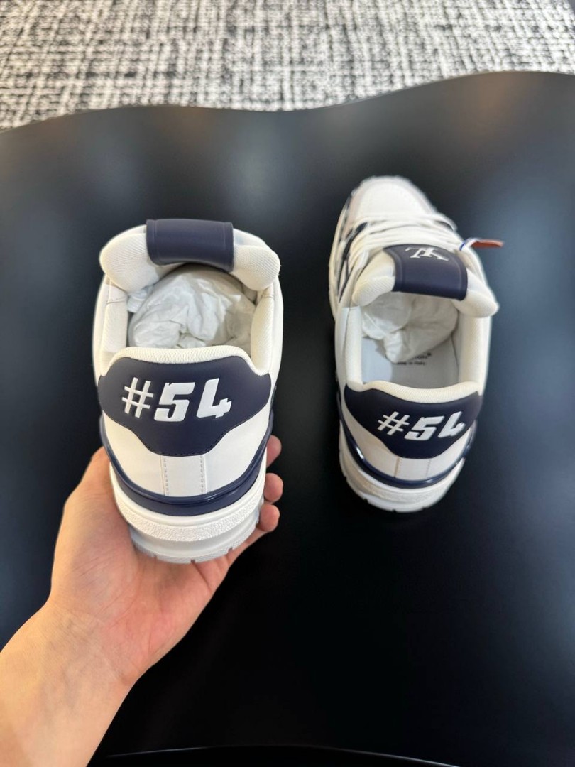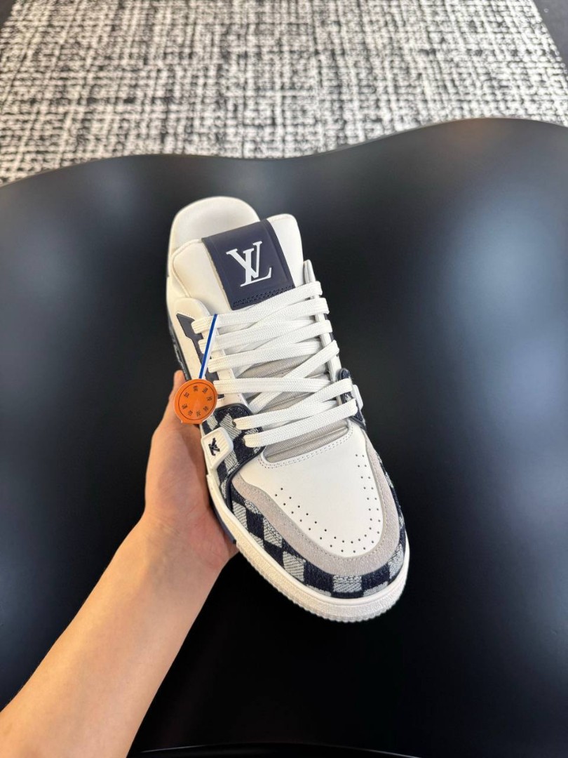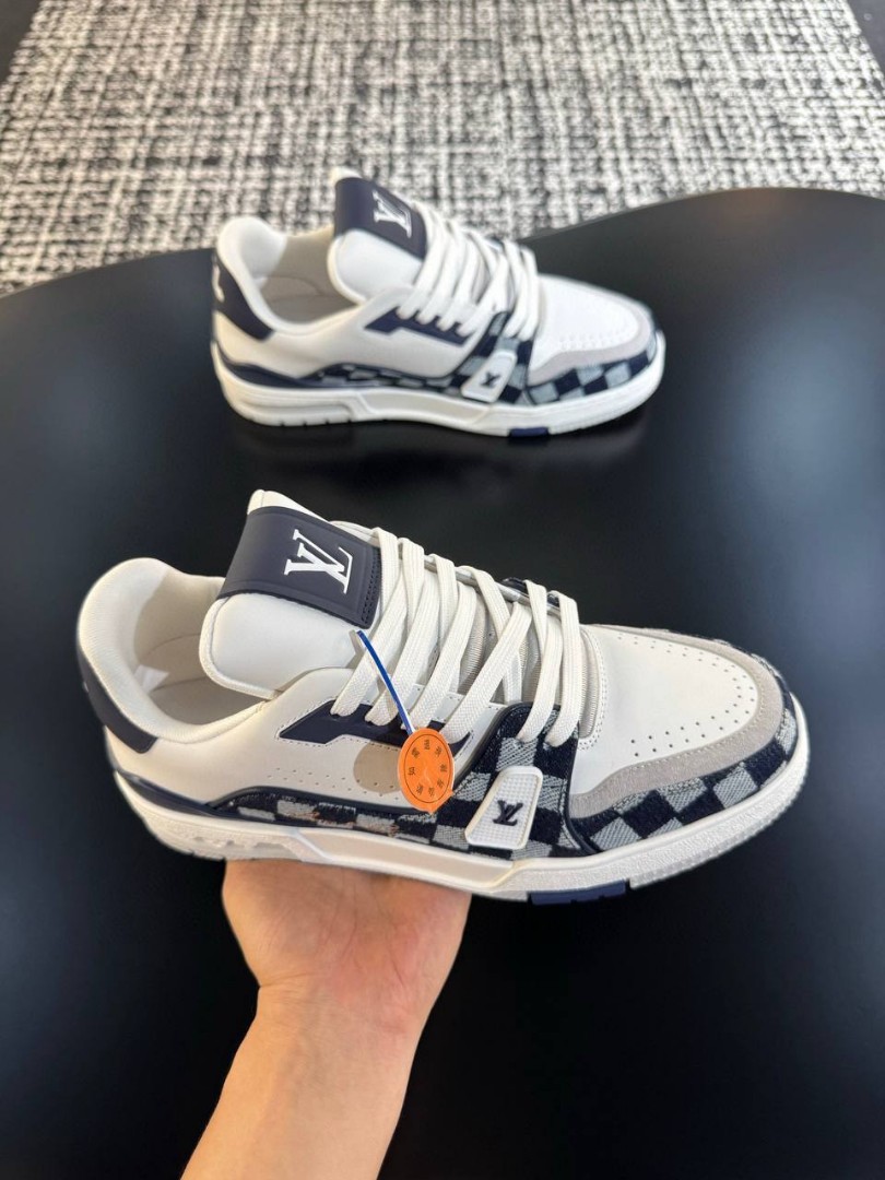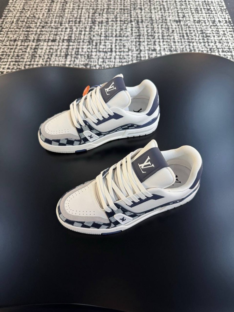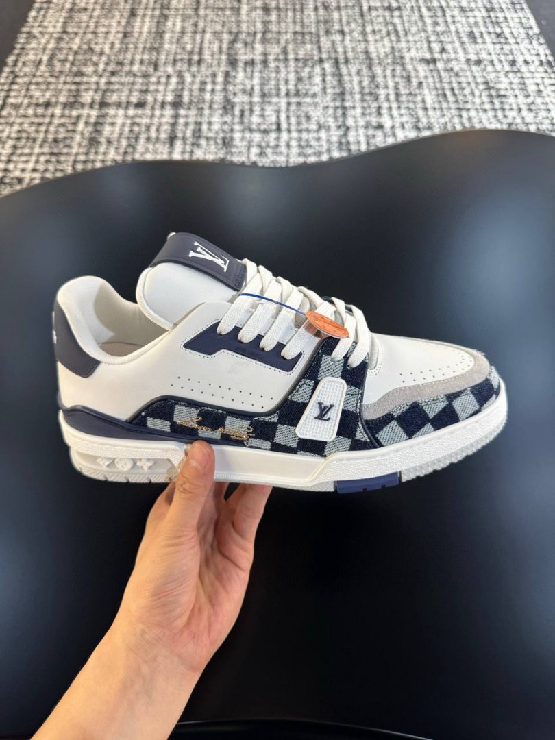 Мужские комбинированные кроссовки Louis Vuitton Trainer белые с синим 2025