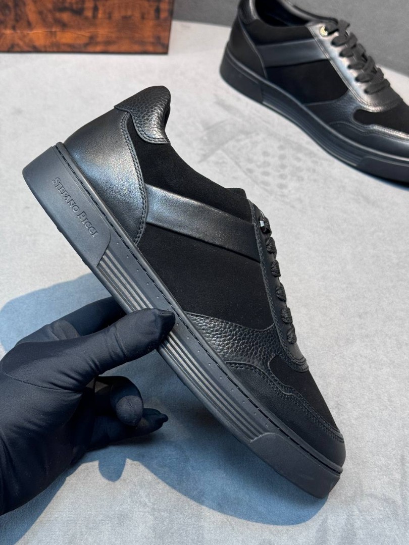 Мужские комбинированные кроссовки Stefano Ricci черные с черной подошвой 2025