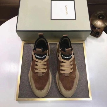 Мужские комбинированные кроссовки Tom Ford 2024 бежевые с коричневым