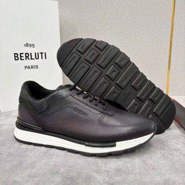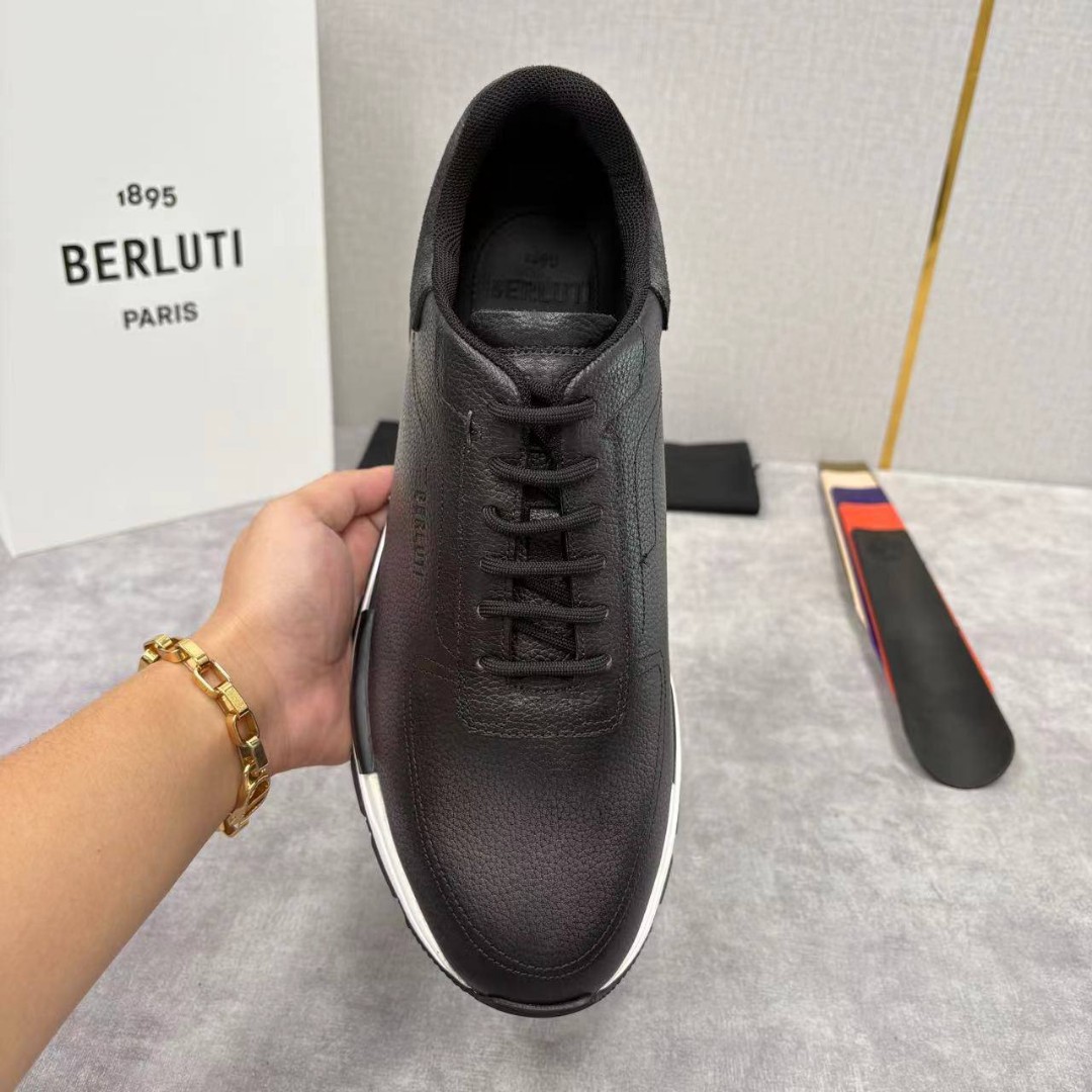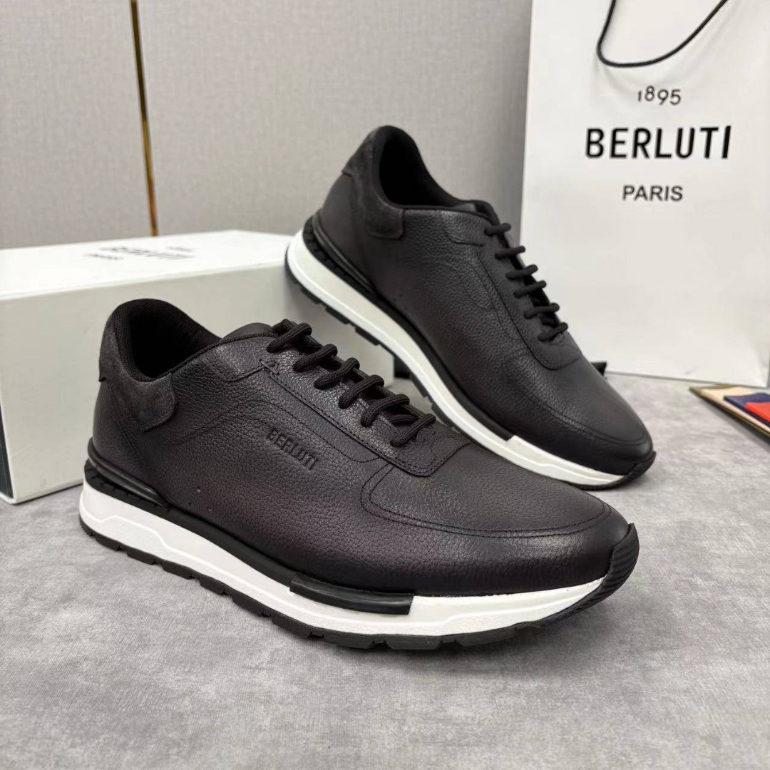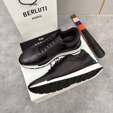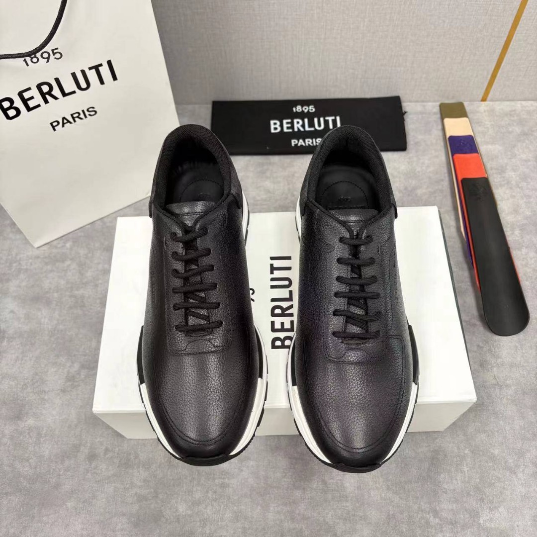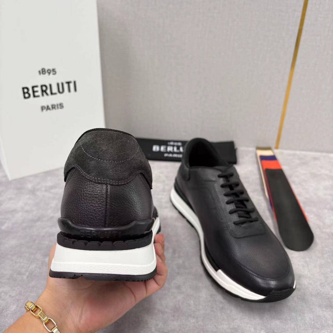 Мужские кожаные кроссовки Berluti черные с белой подошвой 2026