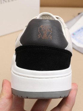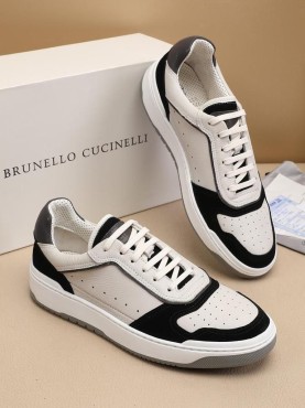 Мужские кожаные кроссовки Brunello Cucinelli 2024 белые с черным