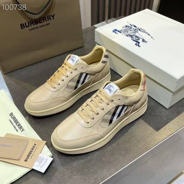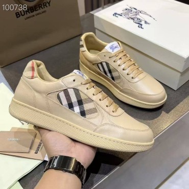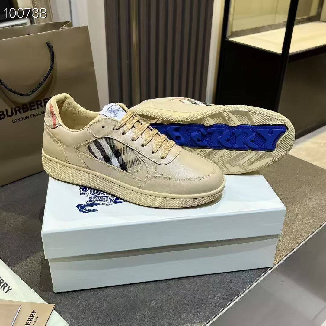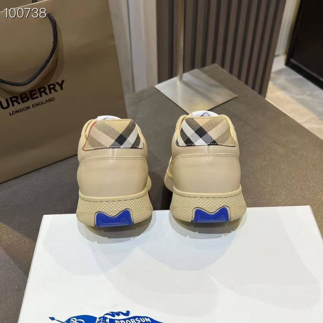 Мужские кожаные кроссовки Burberry бежевые с текстильными вставками 2025