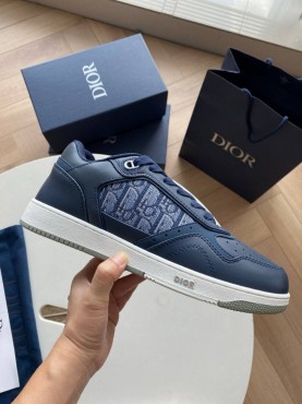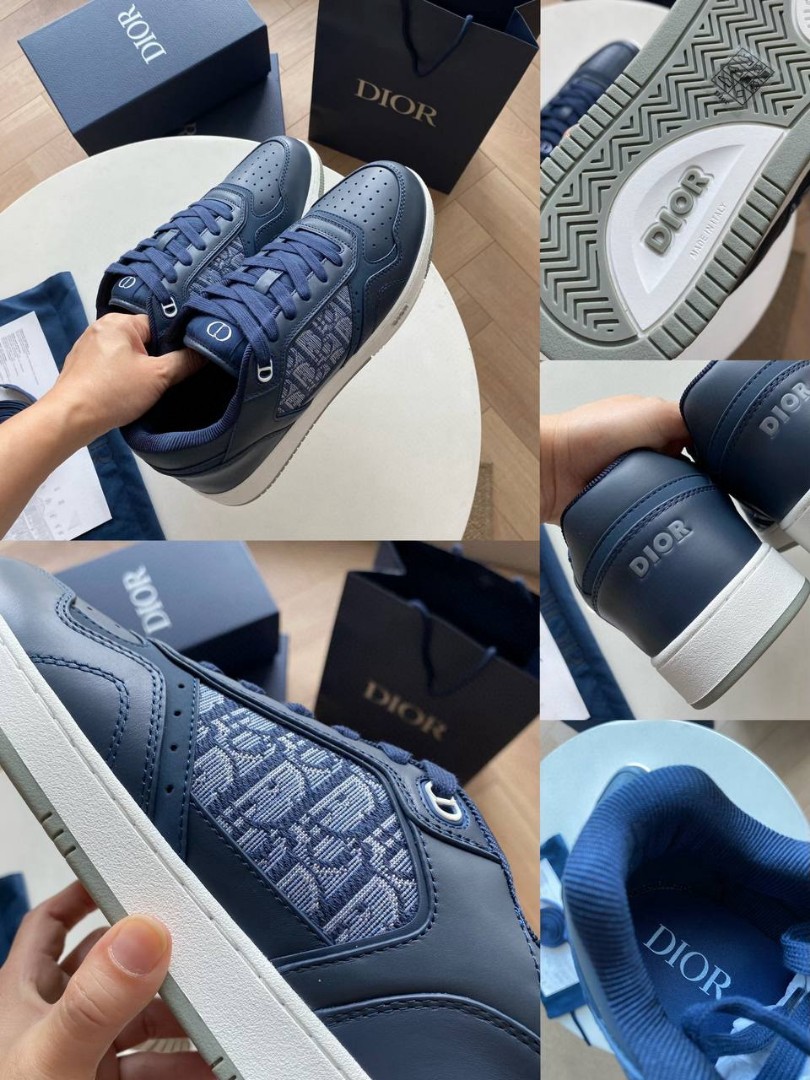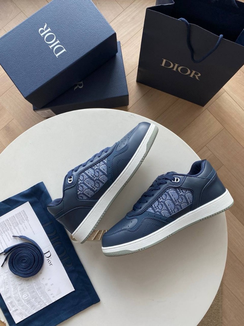 Мужские кожаные кроссовки Christian Dior синие с текстильной вставкой 2025