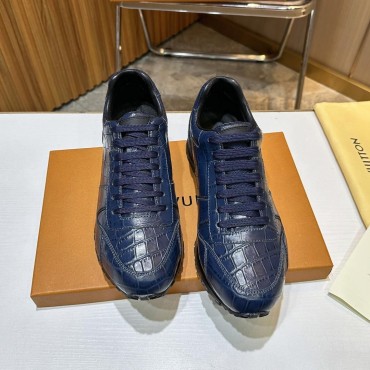 Мужские кожаные кроссовки Louis Vuitton 2024 темно-синие под рептилию глянцевые