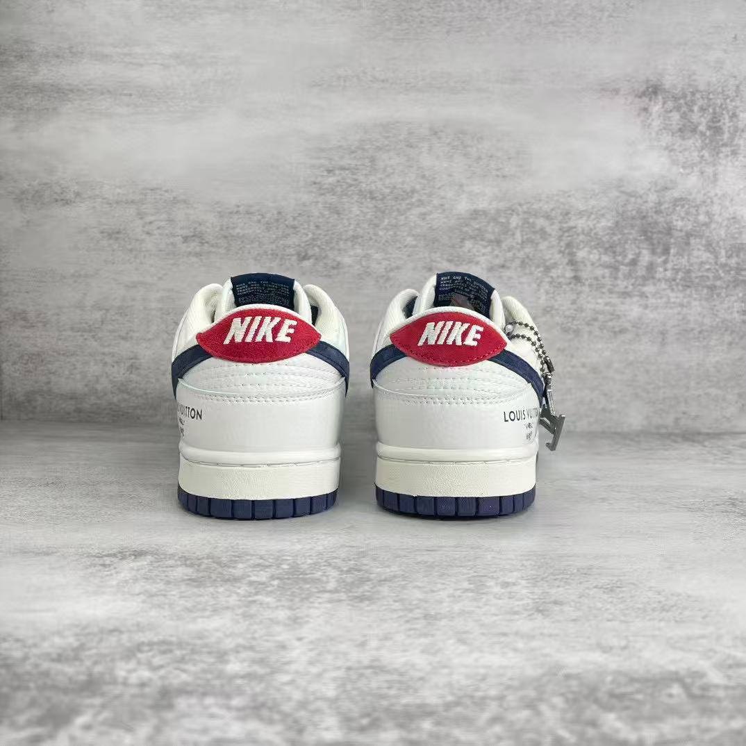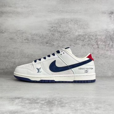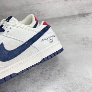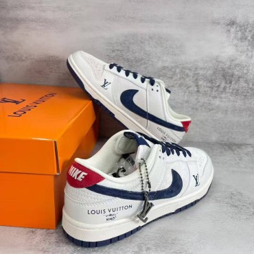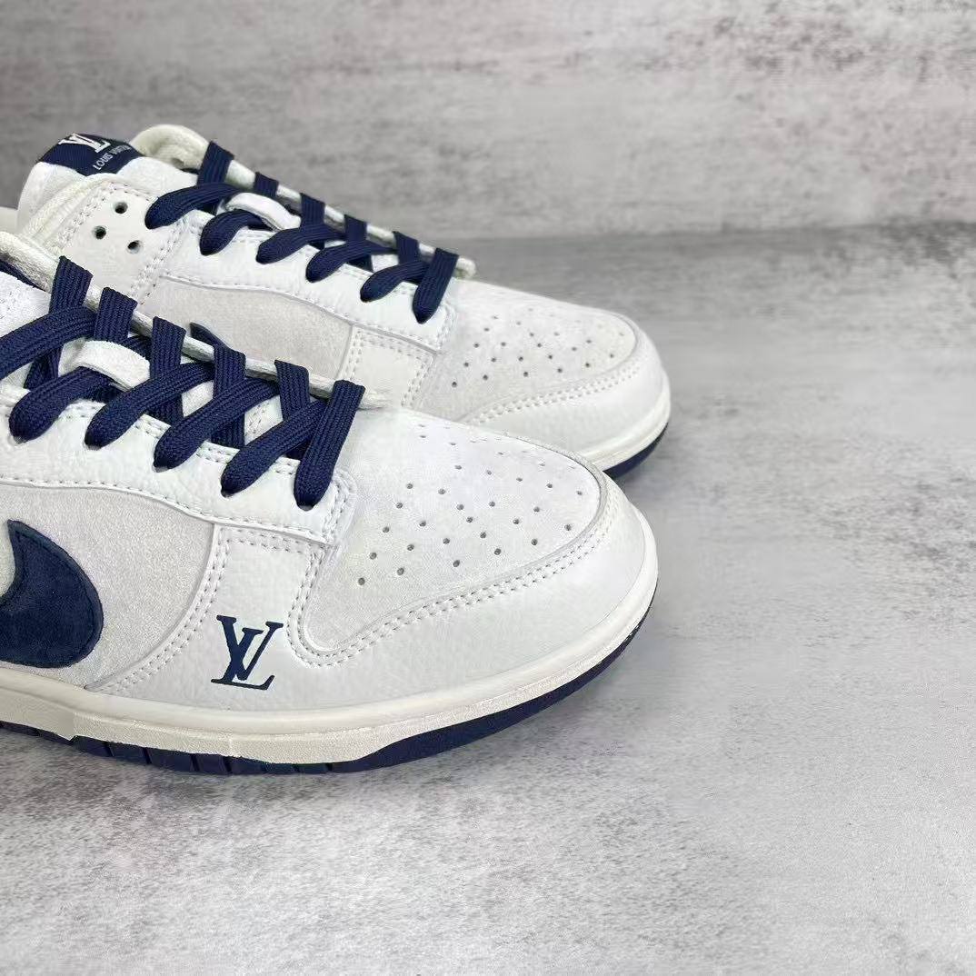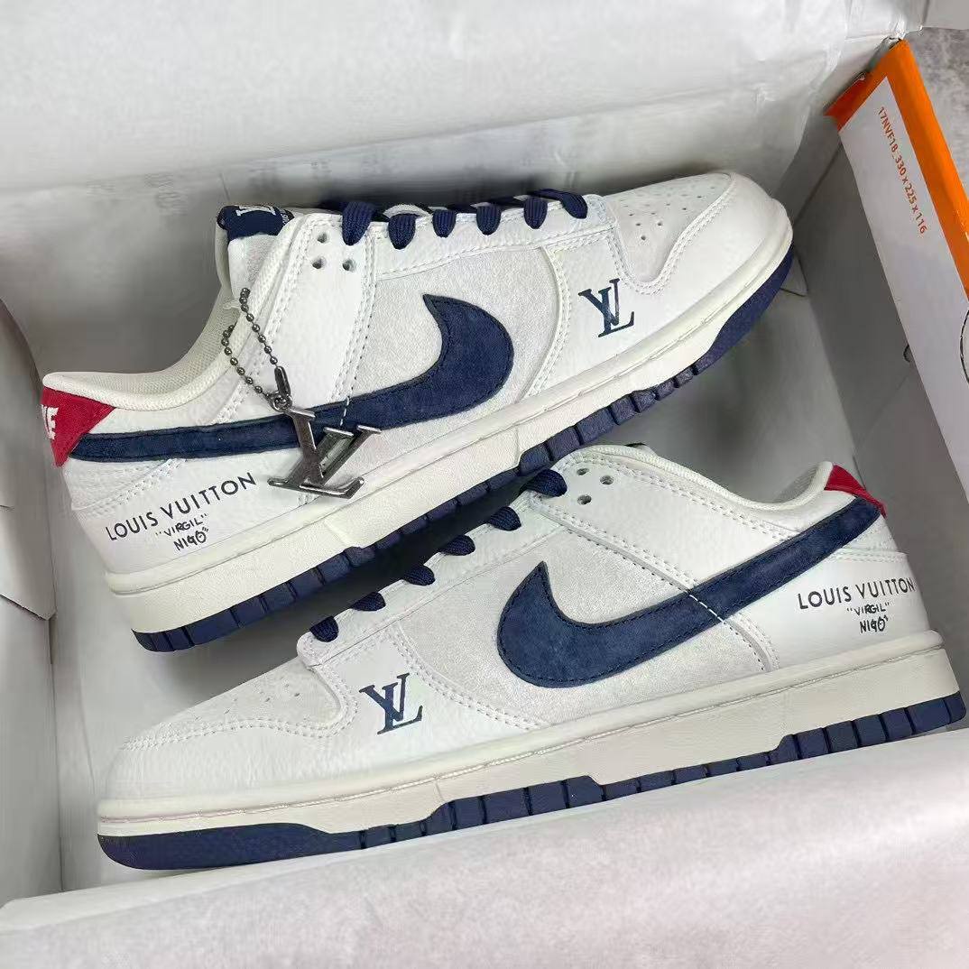 Мужские кожаные кроссовки Louis Vuitton & Nike белые с синими замшевыми элементами 2025