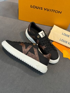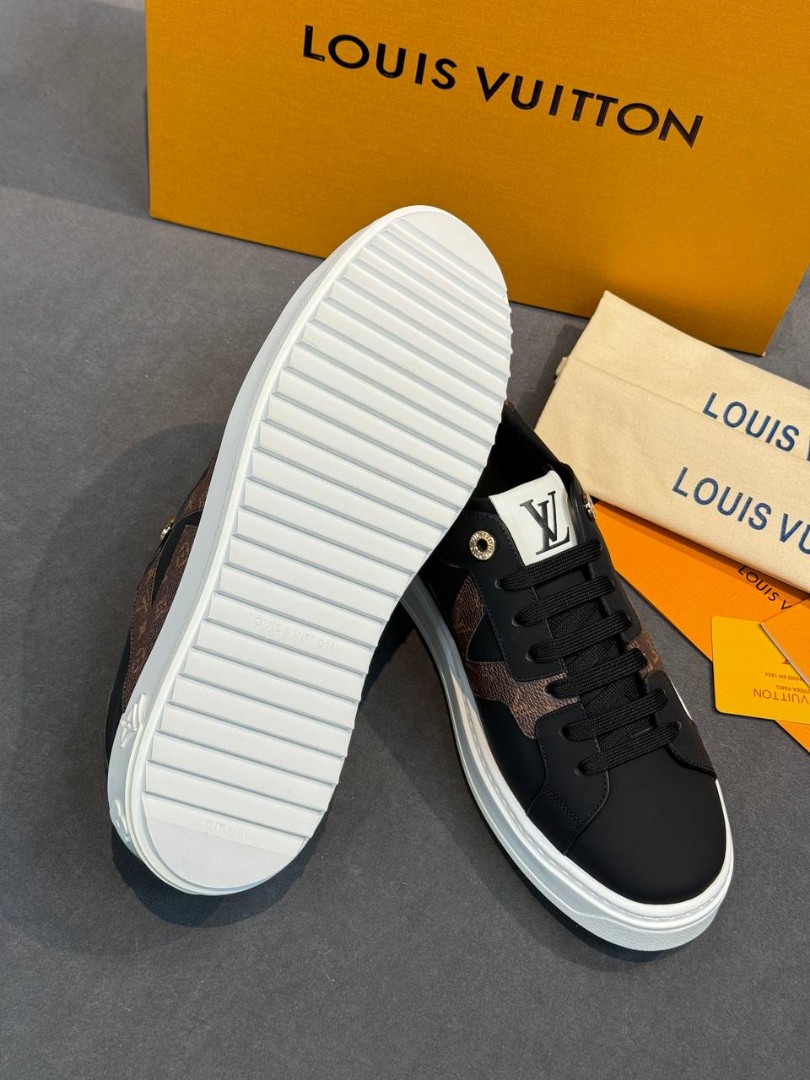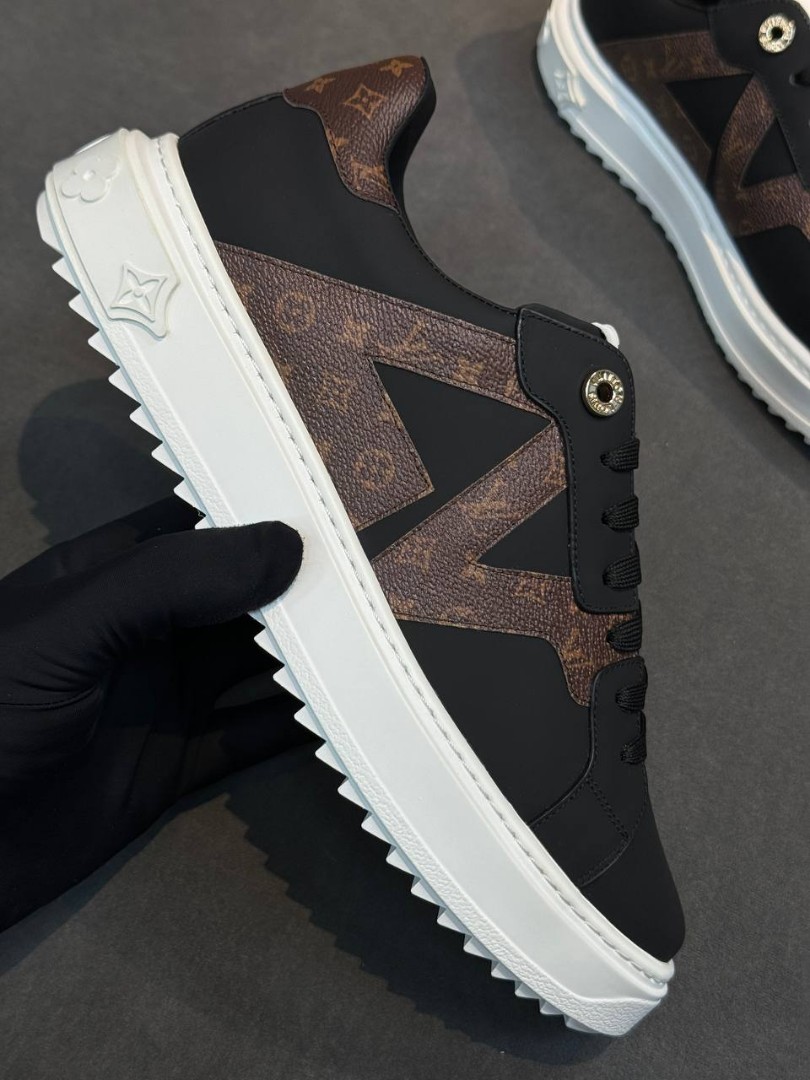 Мужские кожаные кроссовки Louis Vuitton черные с коричневым 2025