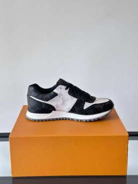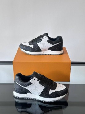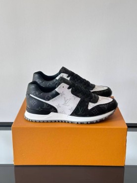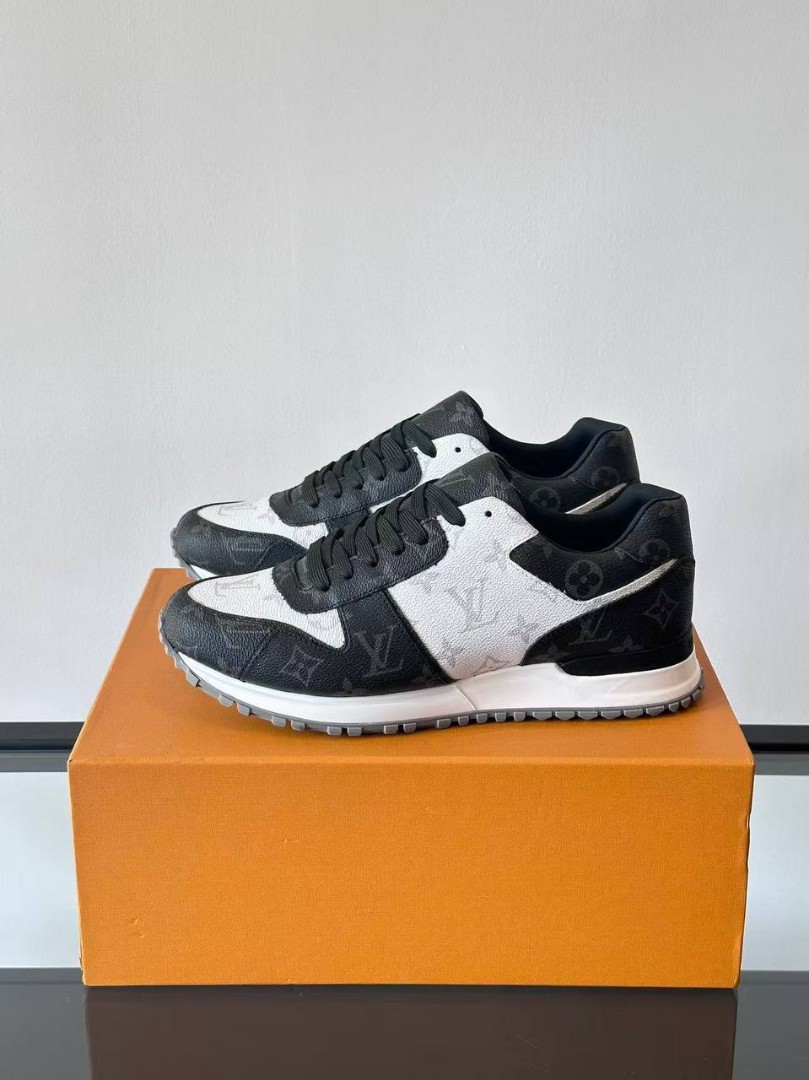 Мужские кожаные кроссовки Louis Vuitton Run Away черные с белым 2025