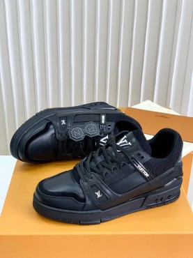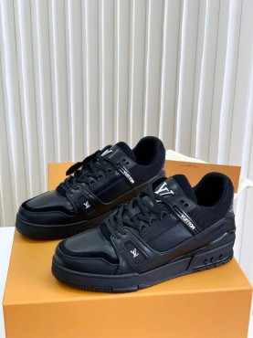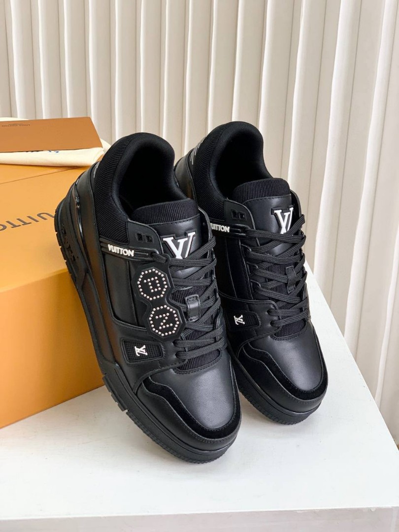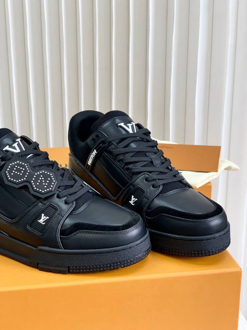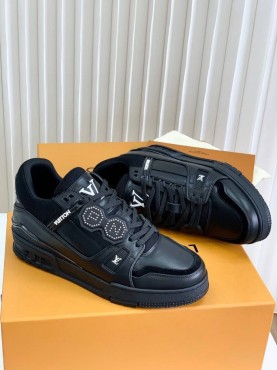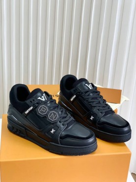Мужские кожаные кроссовки Louis Vuitton Trainer черные 2025