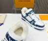 Мужские кожаные кроссовки на меху Louis Vuitton 2023 белые с синим