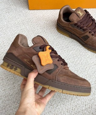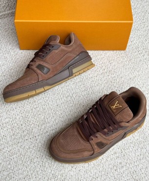 Мужские кроссовки Louis Vuitton Trainer коричневые замшевые 2025