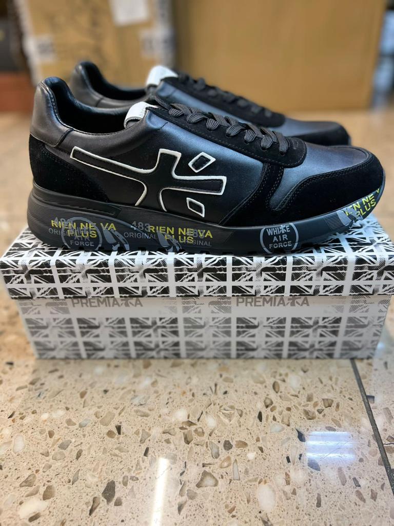 Мужские кроссовки Premiata 2022-2023 черные кожаные с замшей большой размер
