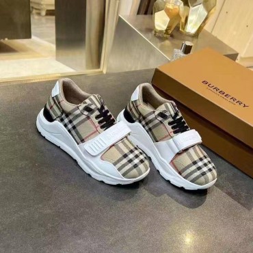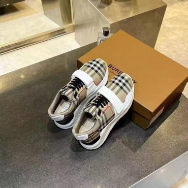 Мужские текстильные кроссовки Burberry бежевые с черным в клетку 2025