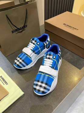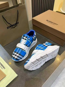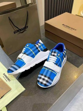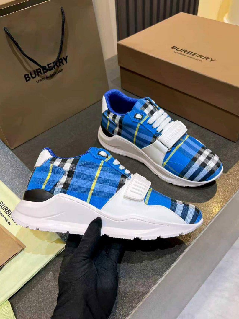 Мужские текстильные кроссовки Burberry синие с белым в клетку 2025