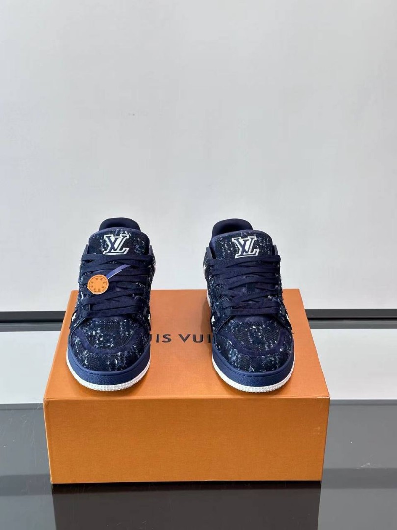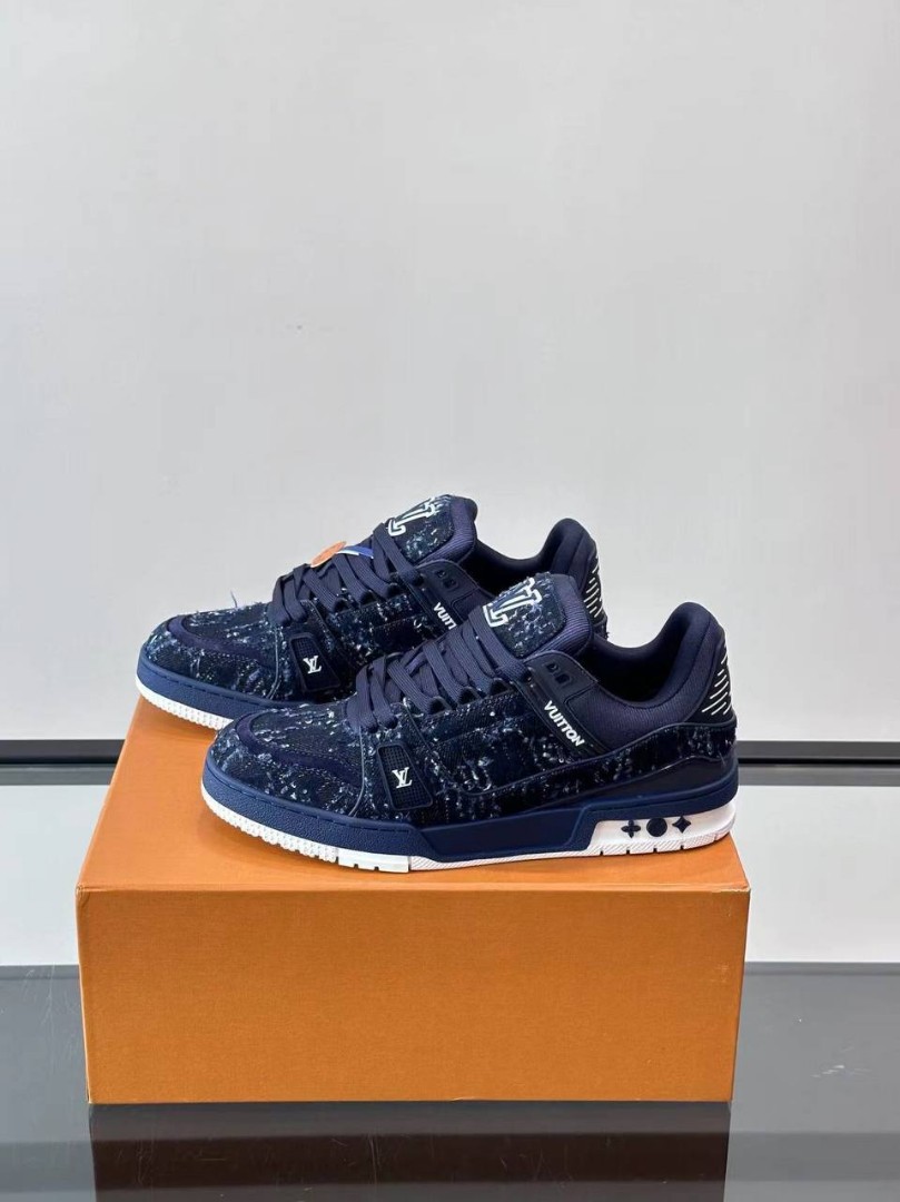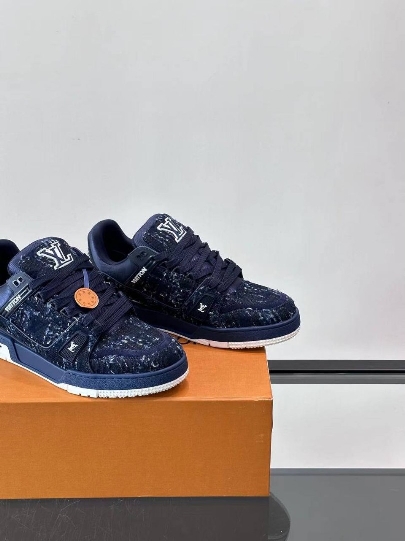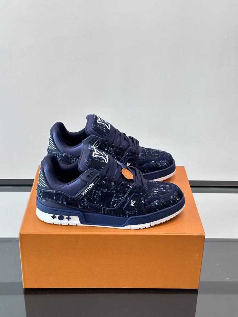 Мужские текстильные кроссовки Louis Vuitton Trainer темно-синие 2025
