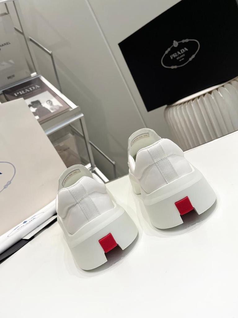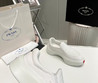 Мужские текстильные кроссовки Prada 2023-2024 белые с красной полосой