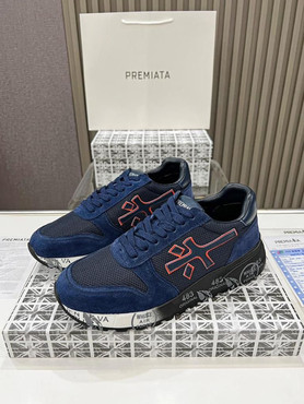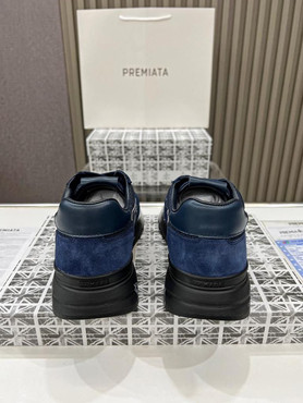 Мужские текстильные кроссовки Premiata 2022-2023 черные с синей замшей
