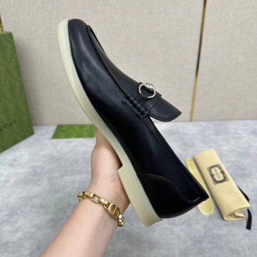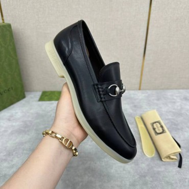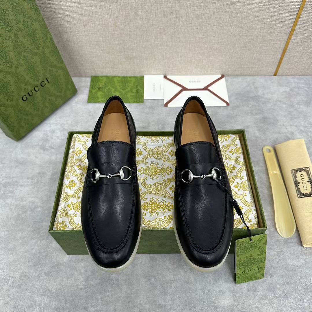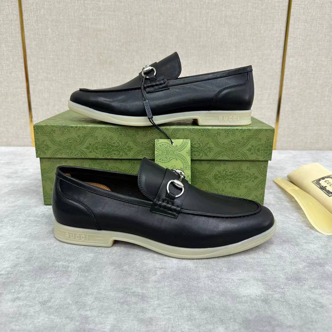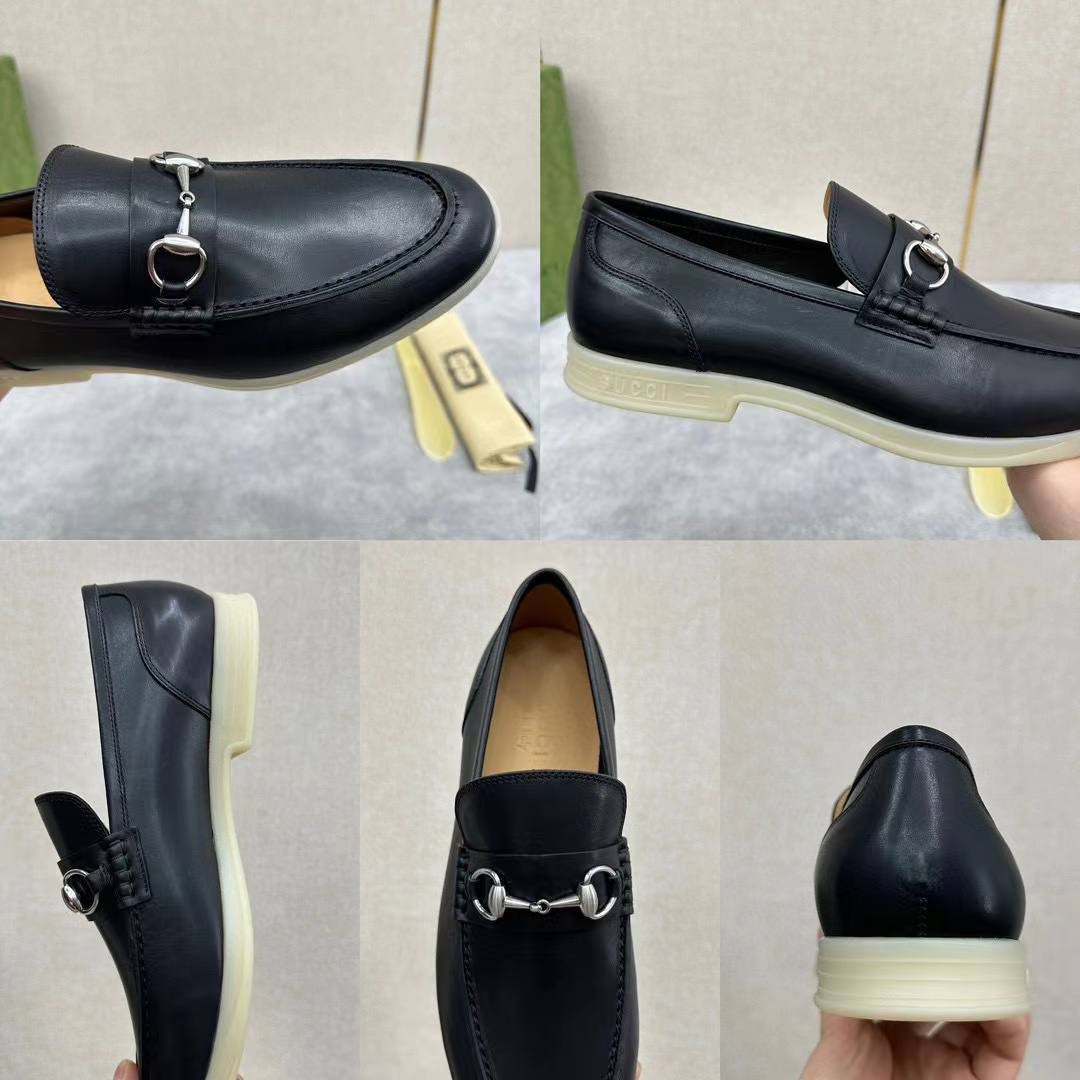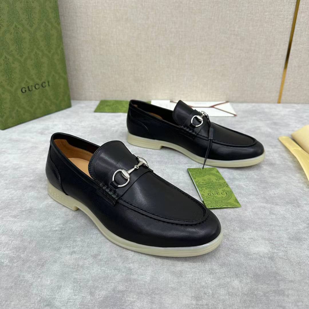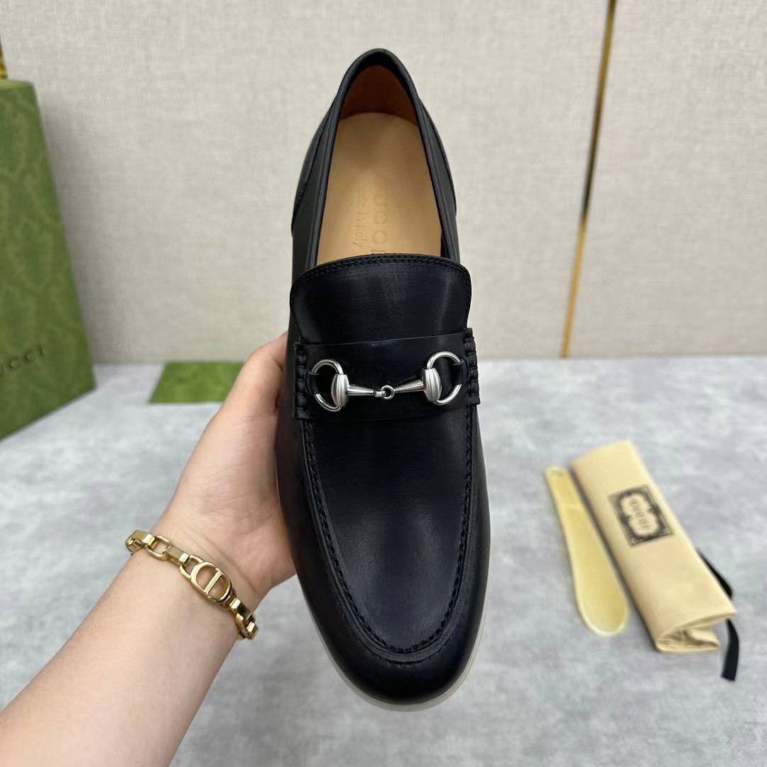 Мужские кожаные лоферы Gucci черные с пряжкой 2026