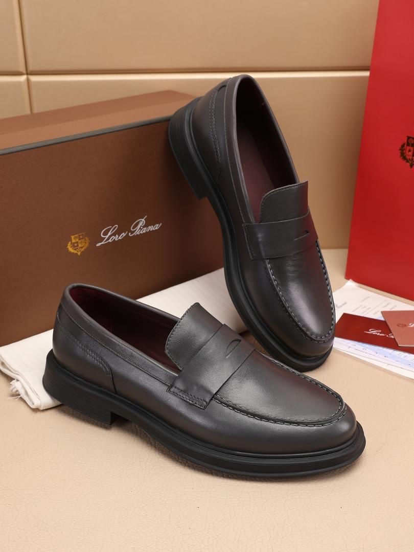 Мужские кожаные лоферы Loro Piana Travis 2024 темно-серые