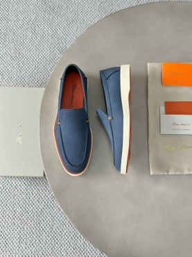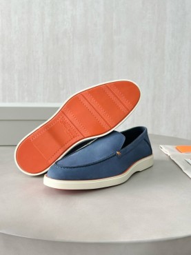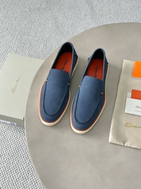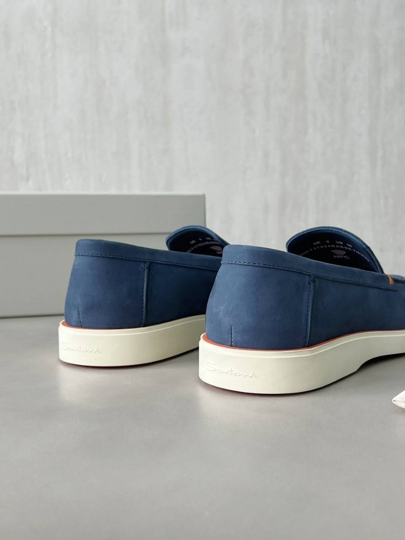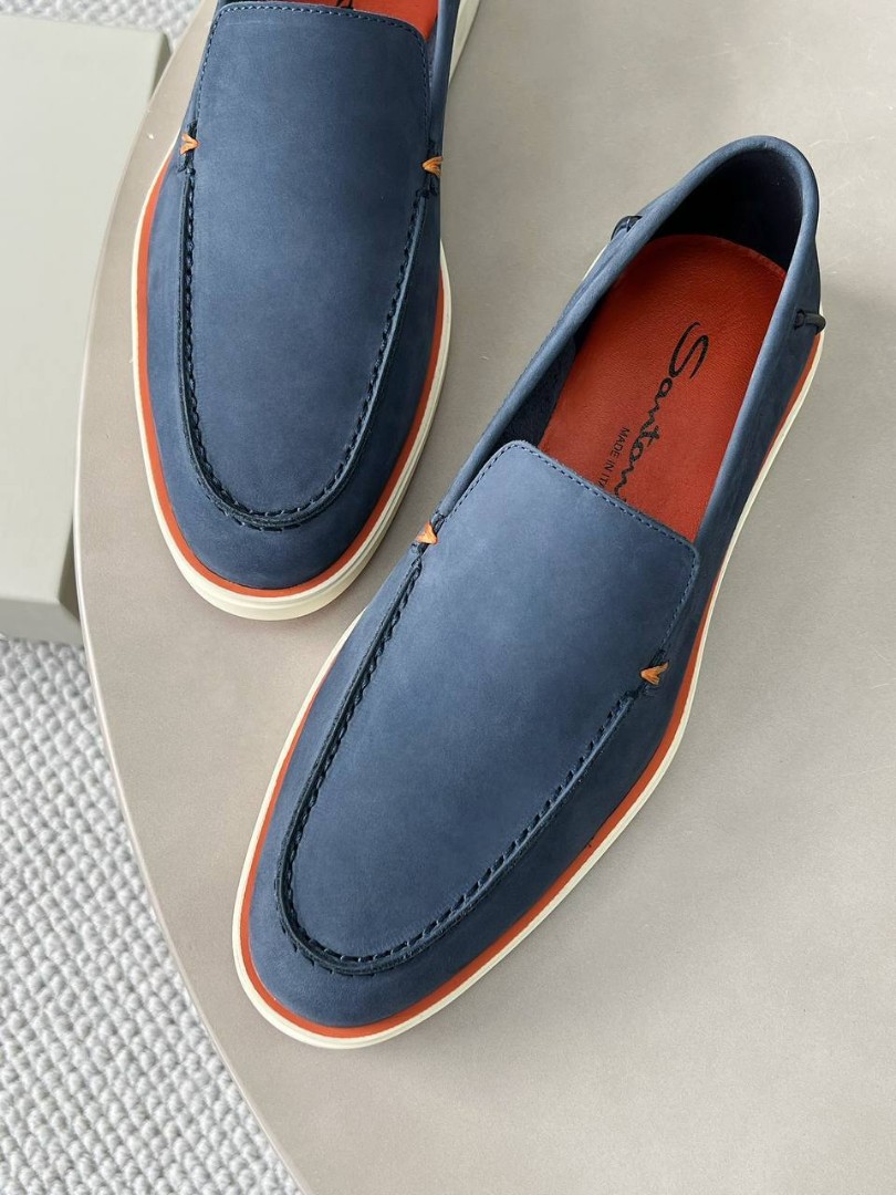 Мужские кожаные лоферы Santoni голубые с оранжевым 2025