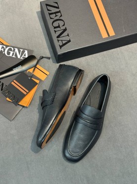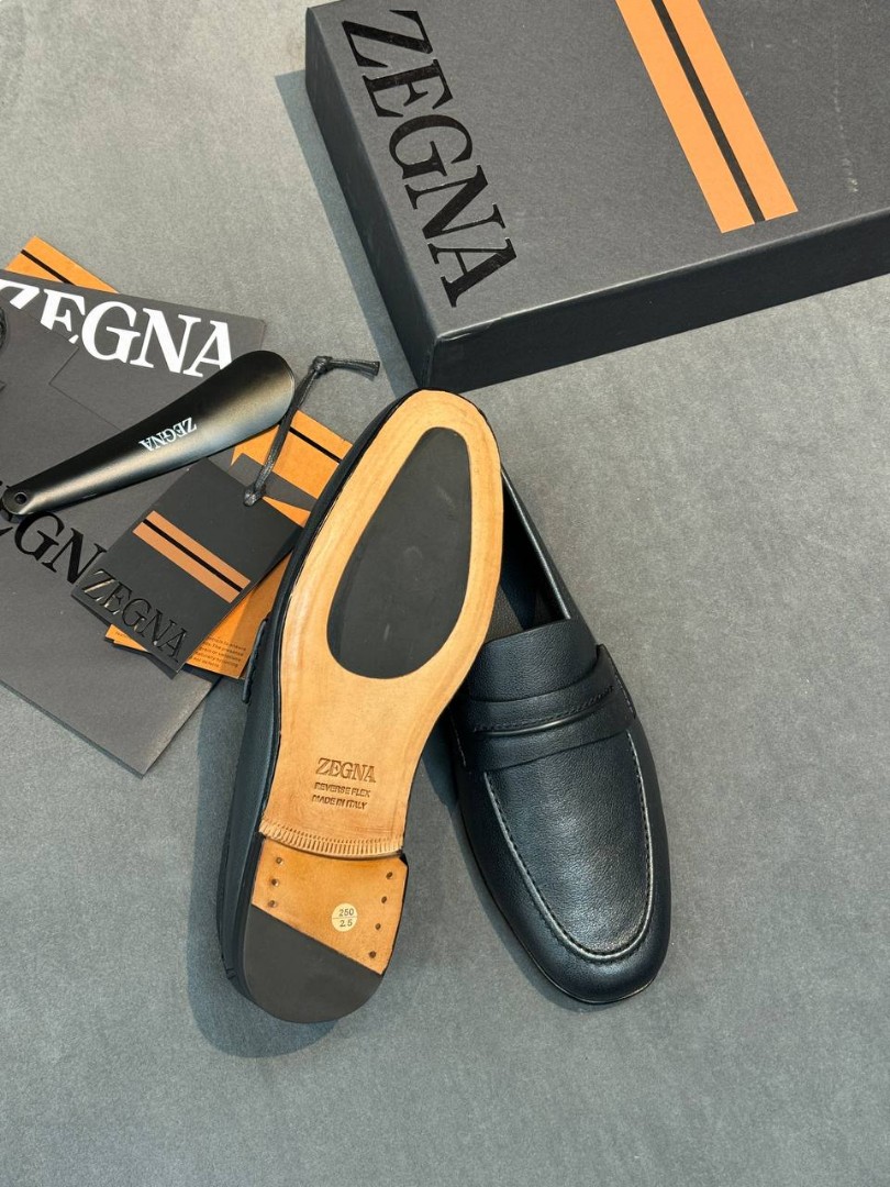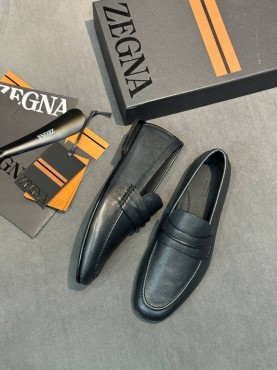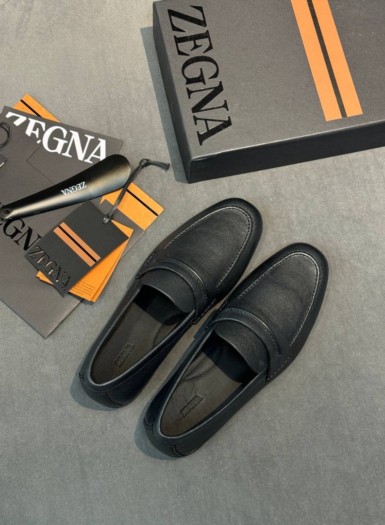 Мужские лоферы из зернистой кожи Ermenegildo Zegna черные 2026