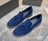 Мужские замшевые лоферы с кисточкой Brunello Cucinelli синие с прострочкой на подошве 2024