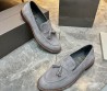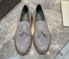 Мужские замшевые лоферы с кисточкой Brunello Cucinelli светло-серые с прострочкой на подошве 2024
