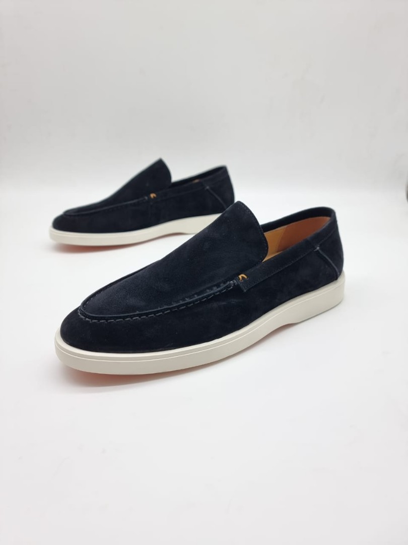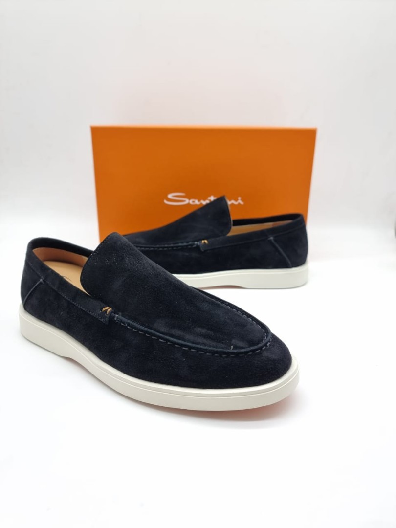 Мужские замшевые лоферы Santoni 2024 темно-синие