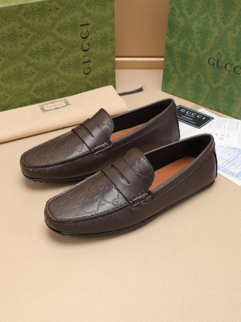 Мужские кожаные мокасины Gucci 2023-2024 коричневые