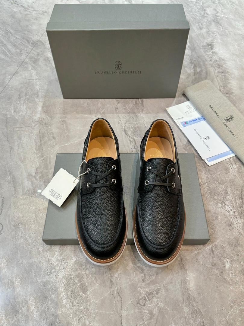 Мужские кожаные мокасины на шнурках Brunello Cucinelli черные 2024