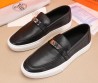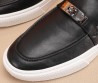 Мужские кожаные мокасины с пряжкой Hermes 2023 черные с белой подошвой