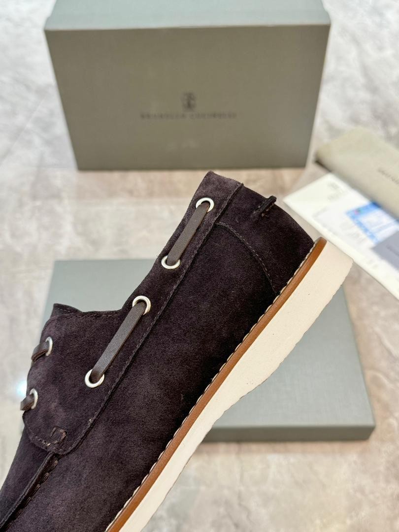 Мужские замшевые мокасины на шнурках Brunello Cucinelli коричневые 2024