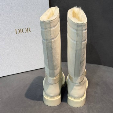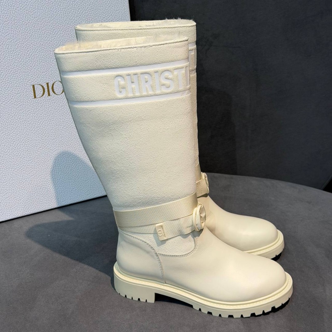 Женские комбинированные сапоги Christian Dior белые на меху 2025