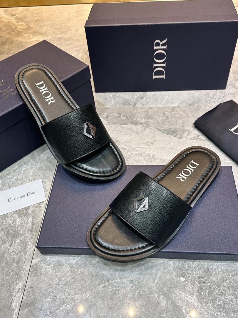 Мужские кожаные шлепанцы Christian Dior черные с серебристым элементом 2024