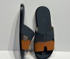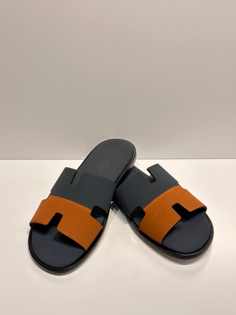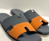 Мужские кожаные шлепки Hermes 2024 серые с оранжевым