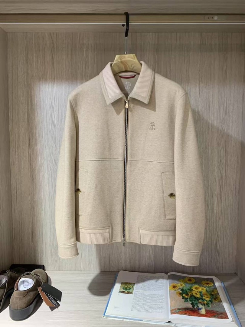 Мужская шерстяная куртка на молнии Brunello Cucinelli бежевая 2026