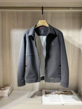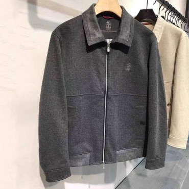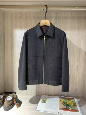 Мужская шерстяная куртка на молнии Brunello Cucinelli темно-серая 2026