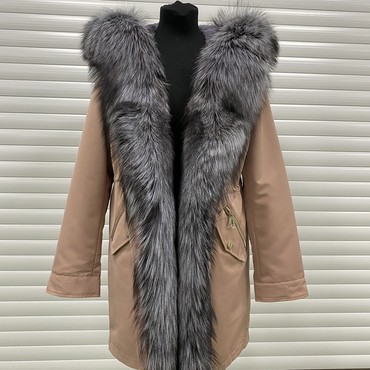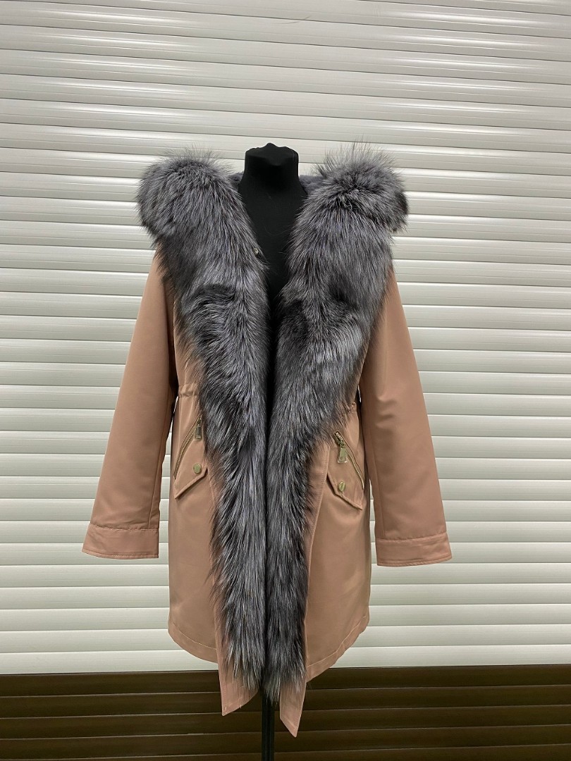 Пудровая парка с мехом чернобурки 95 см