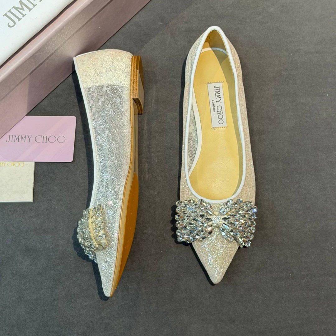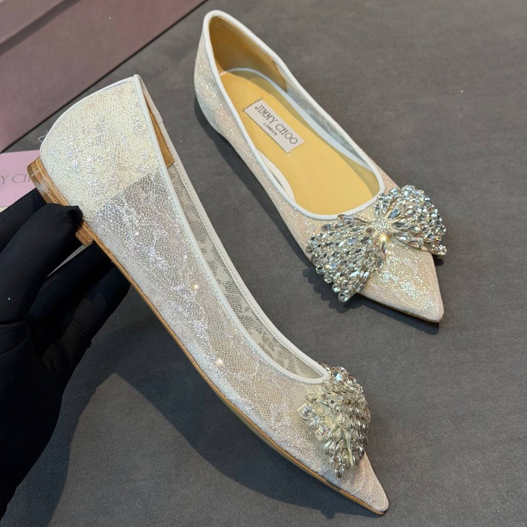 Женские комбинированные балетки Jimmy Choo белые сетчатые со стразами 2026