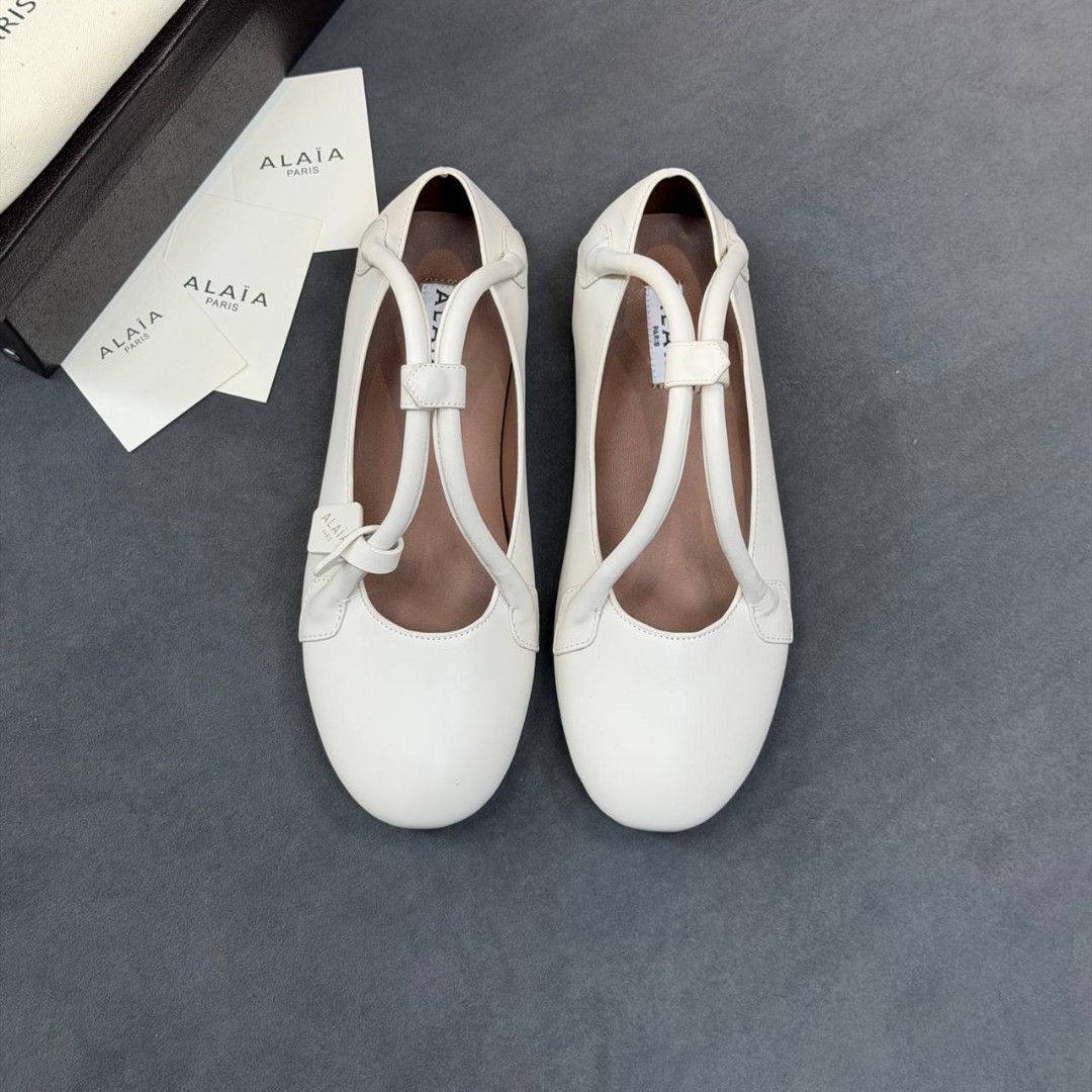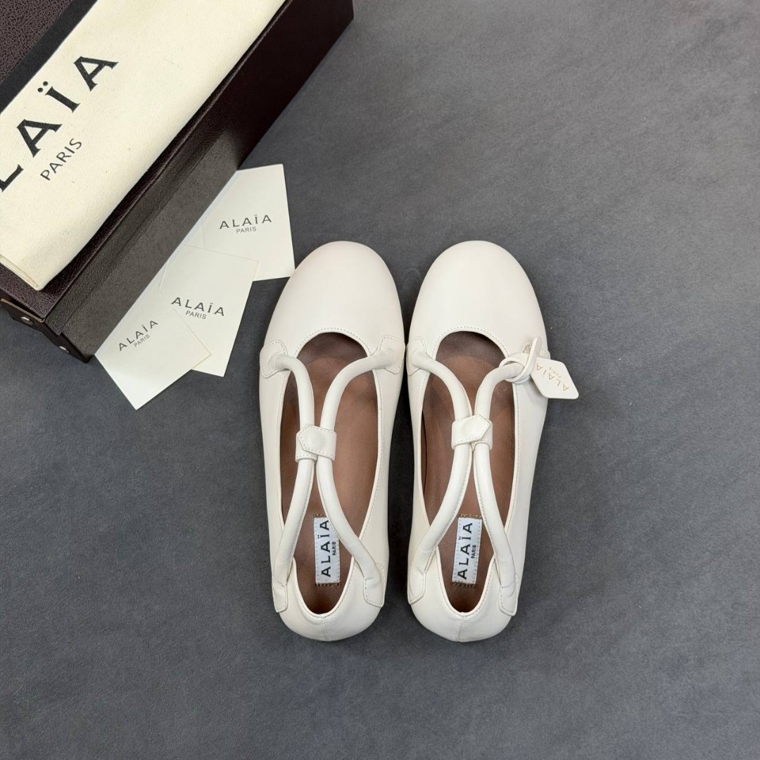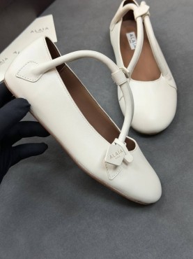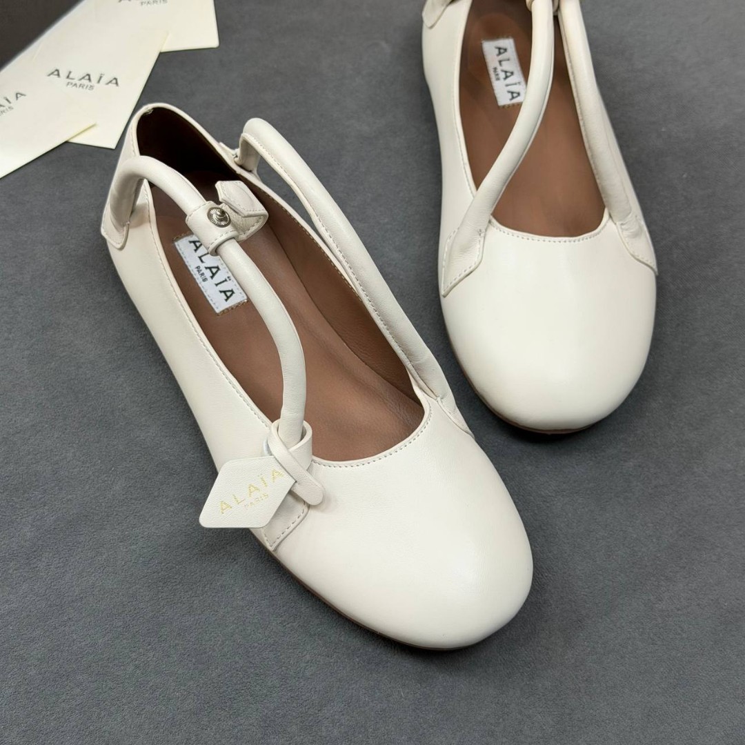 Женские кожаные балетки Alaia белые с ремешками 2026