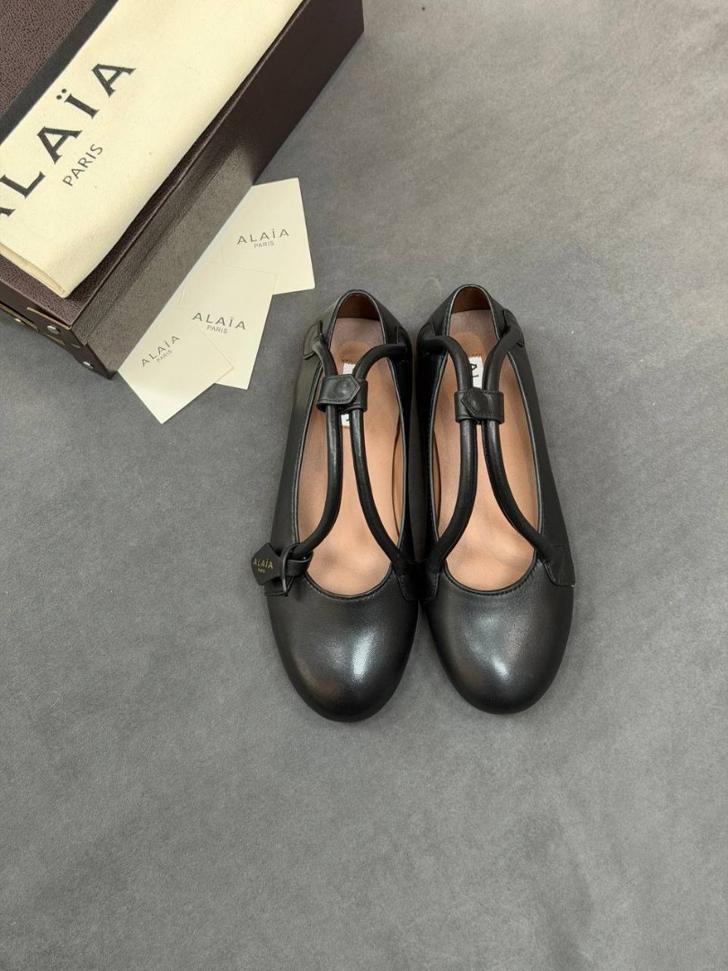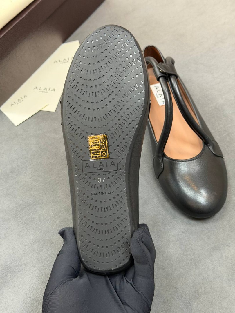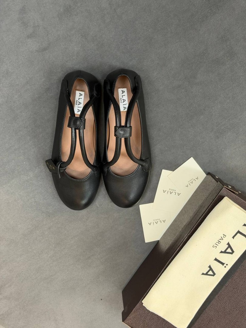 Женские кожаные балетки Alaia черные с ремешками 2026