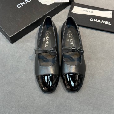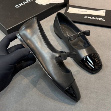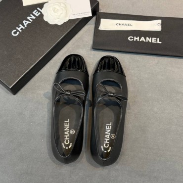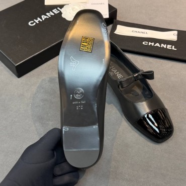 Женские кожаные балетки Chanel черные с лакированным носом 2026