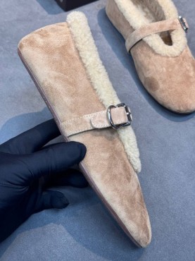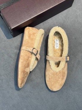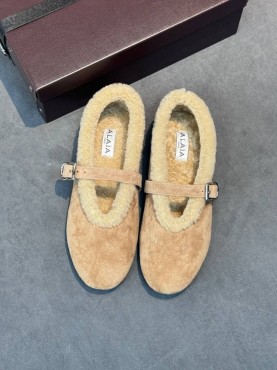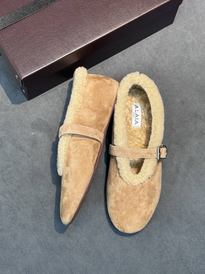 Женские замшевые балетки Alaia бежевые на меху 2025