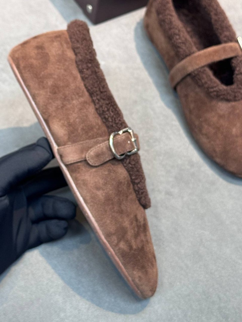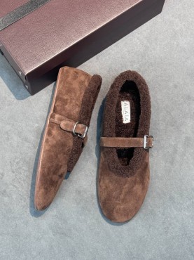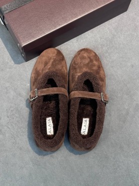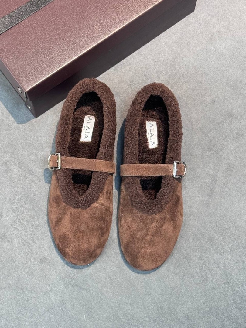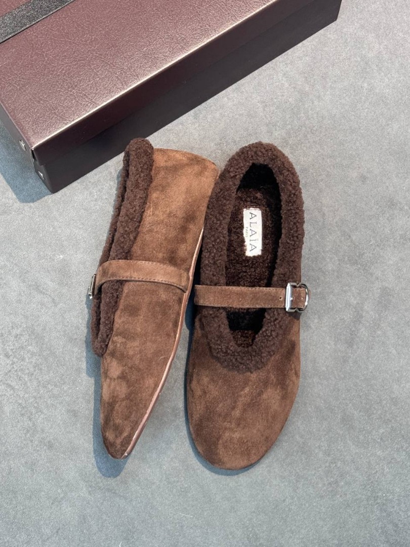 Женские замшевые балетки Alaia коричневые на меху 2025
